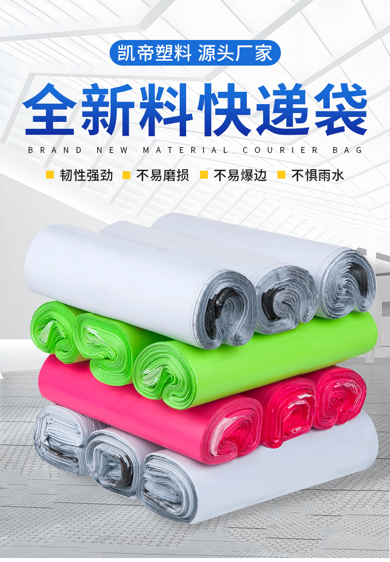 快遞袋,是指電商、快遞行業(yè)運送文件、單據(jù)、資料、貨物等所包裝用的袋子。又稱為速遞袋、郵寄袋、快遞打包袋。武漢凱帝可以生產(chǎn)PE快遞袋、全生物降解快遞袋,袋子結(jié)實、封口牢固、不爆邊。電話:13554141222.